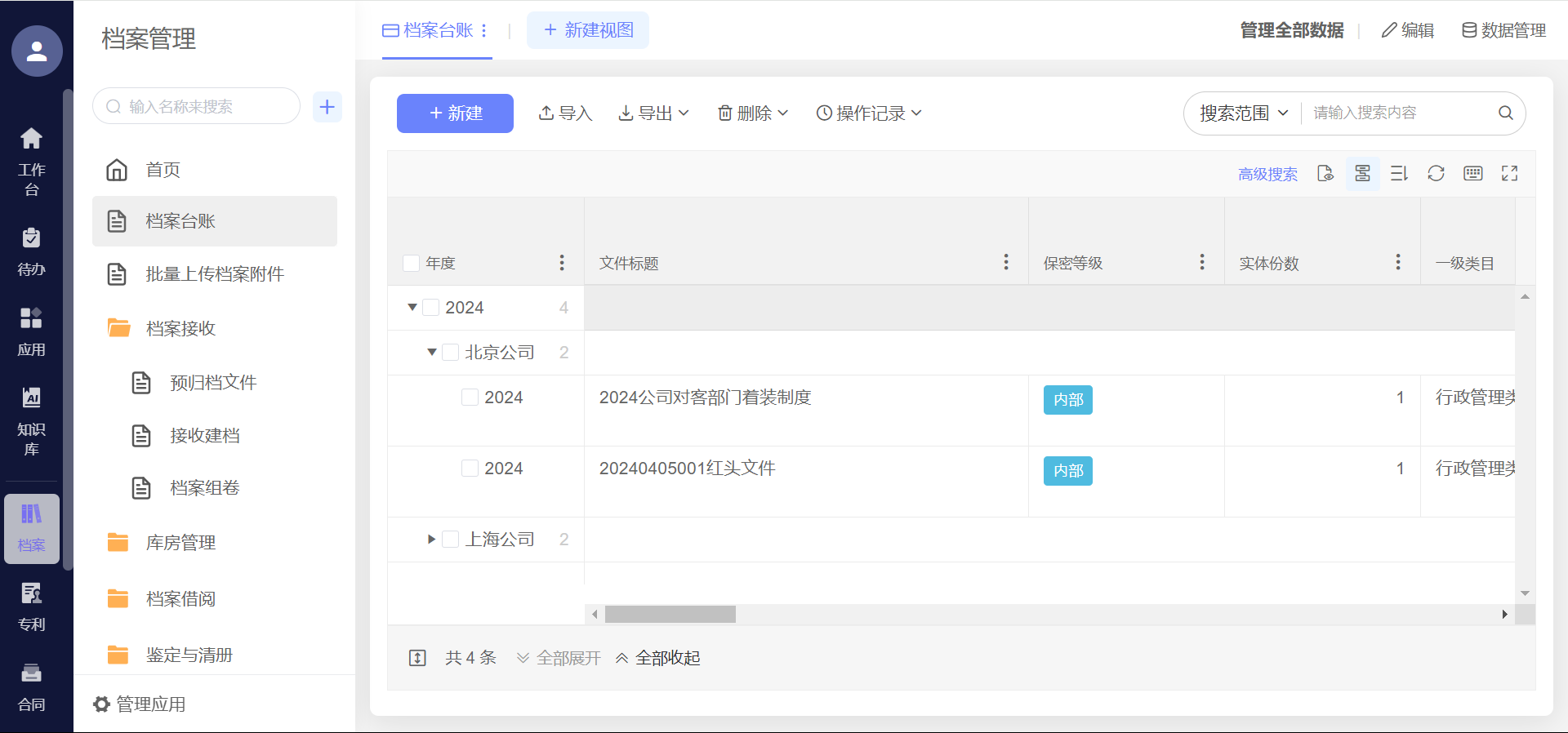 档案宝预设了分类模板,并支持自定义调整,统一了元数据著录规则。同时,建立了跨部门档案数据中枢,实现了"一次录入、多端同步"。