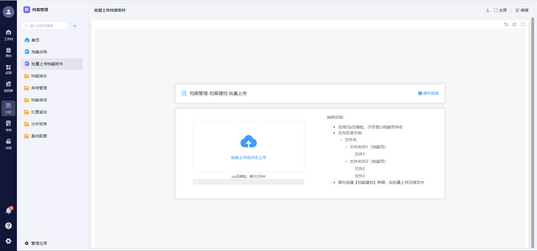 3. 批量处理:可应对海量档案,实现批量导入、分类、修改、导出,大幅节省档案管理人员工作量;