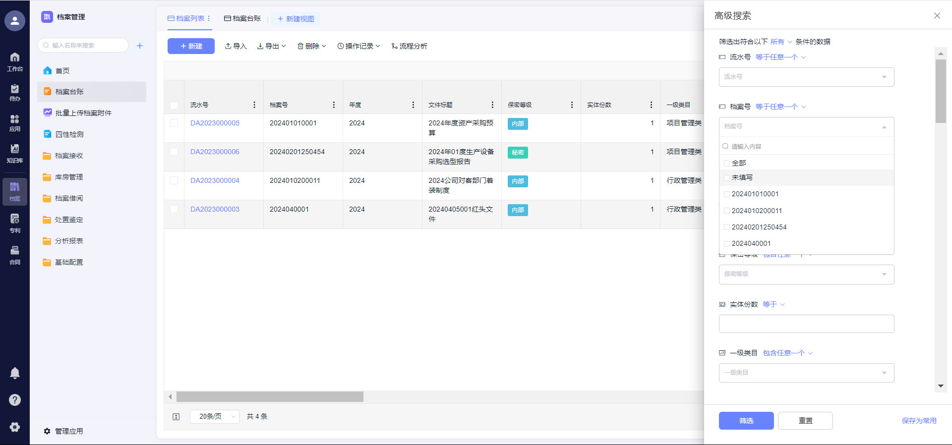 ●全文检索+多条件筛选,几秒定位目标档案,效率提升