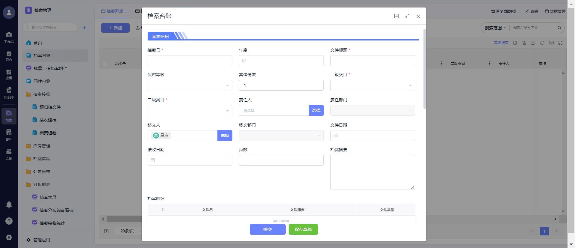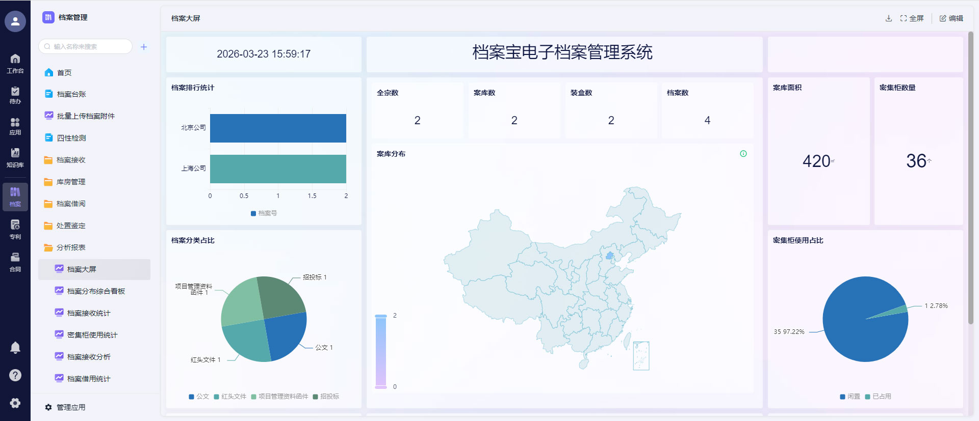 - 全局档案看板:归档率、借阅量、合规情况一目了然;