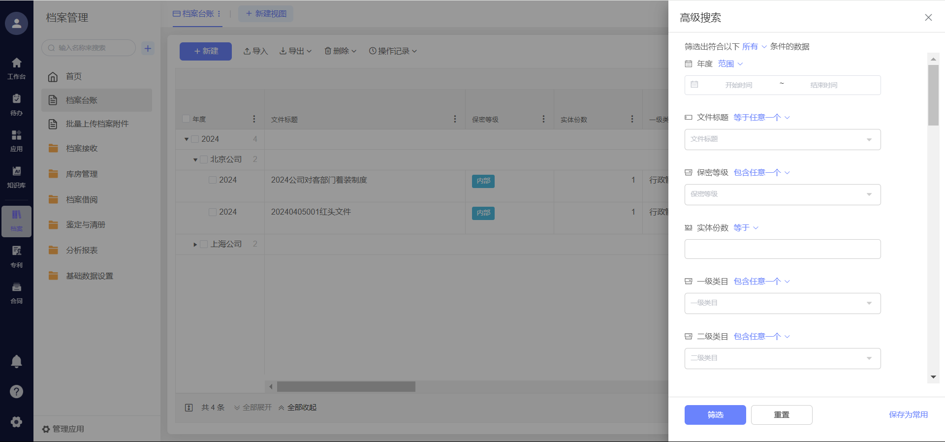 ● 全门类档案管理:从员工合同到会计凭证,覆盖多种档案类型,支持自定义分类。
