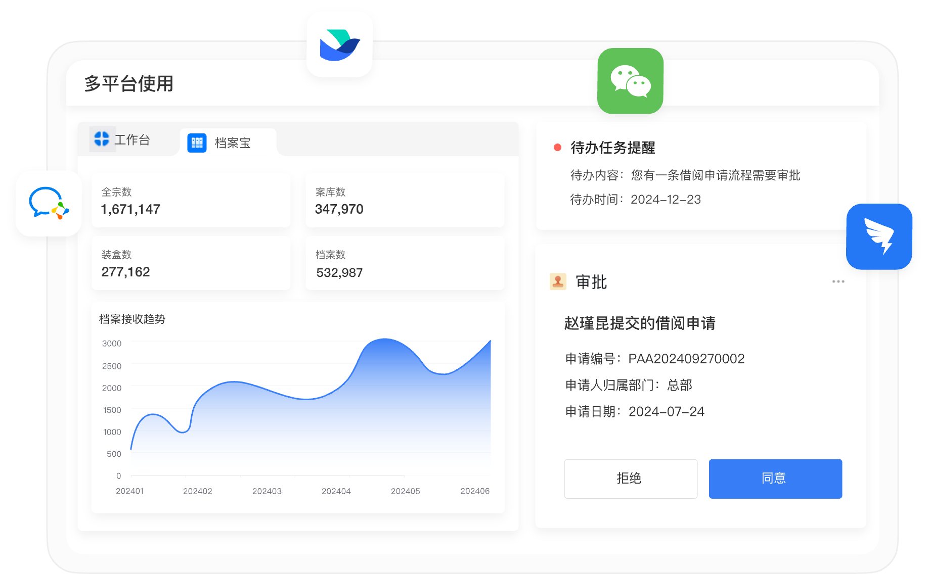档案宝彻底打破空间限制,支持手机、电脑、企业微信多端同步操作,异地员工想借阅档案,一键发起审批,审批通过后即可线上查看,无需来回邮寄。同时电子存储替代实体库房,大幅节省租赁成本和耗材费用。某地产集团部署档案宝后,年省库房租金、耗材采购费用超30万元,跨部门、异地档案协同效率提升60%,业务推进更顺畅。